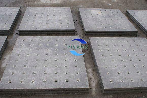 水泥濾板是水處理過濾池中的關鍵工藝,在濾池在紅起到承托濾料過濾層和汽水反沖洗配水的雙重作用。我廠混凝土濾板采用立式鋼模澆制而成,使用水灰、細石等材料配制材料,內置#10號國標螺紋鋼筋進行支撐,水泥混凝土強度在C25-C30,水泥預制濾板執(zhí)行標準 GB50204,按照水處理行業(yè)產品標準執(zhí)行,根據用戶單位設計要求開孔數進行加工,預埋ABS 塑料預埋管套,配雙層優(yōu)質螺紋鋼筋,采用高標號水泥,標準細砂進行機械攪拌,搗實澆制而成,濾板上下兩面每平方米水平誤差±1mm。濾池中安裝達到整池誤差≤5mm的凈高度,且四邊齊整,無翹缺,滿足水處理濾池設計技術規(guī)范要求。